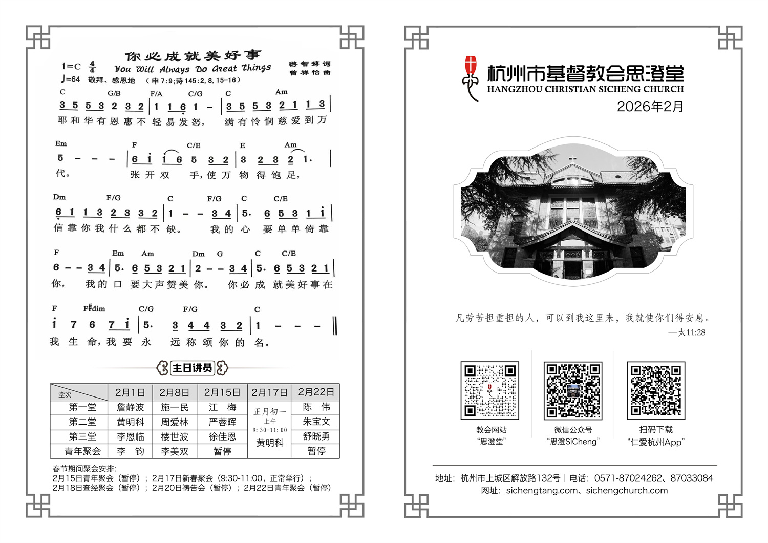 2026年2月份主日单