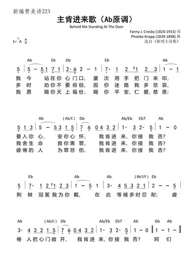 赞美史话 | 第223首 《主肯进来歌》(Behold Me standing at the door)