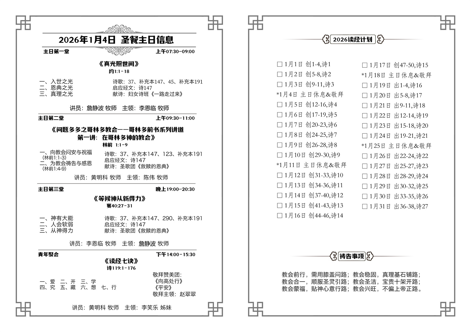 2026年1月份主日单