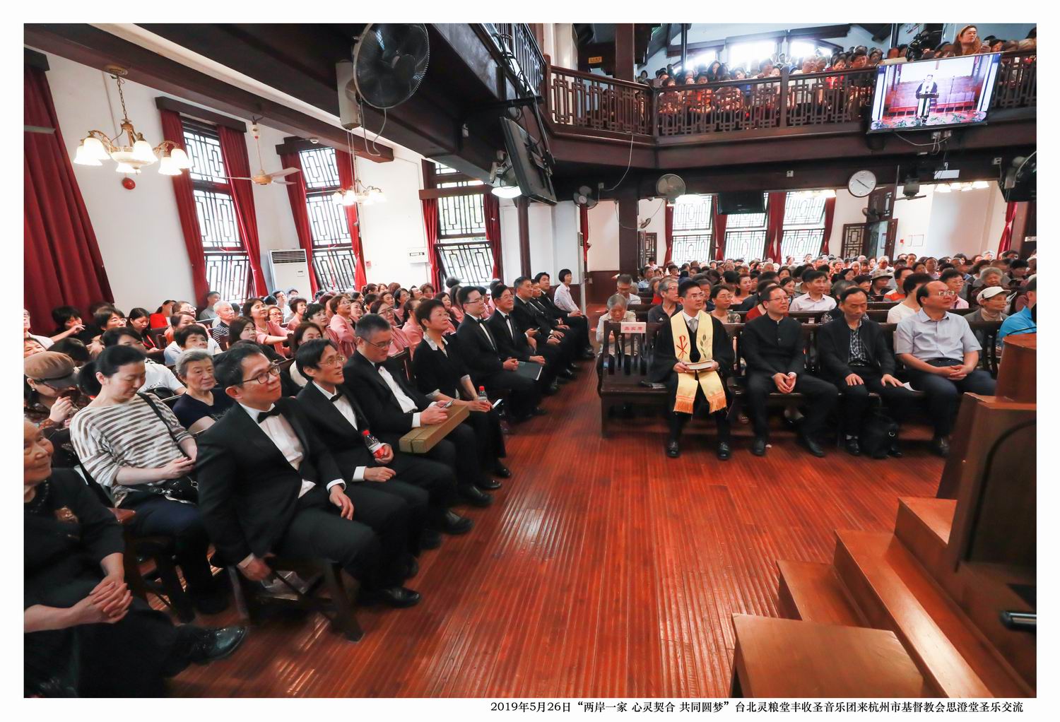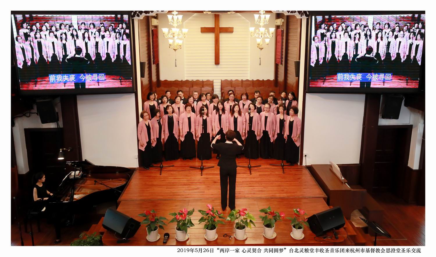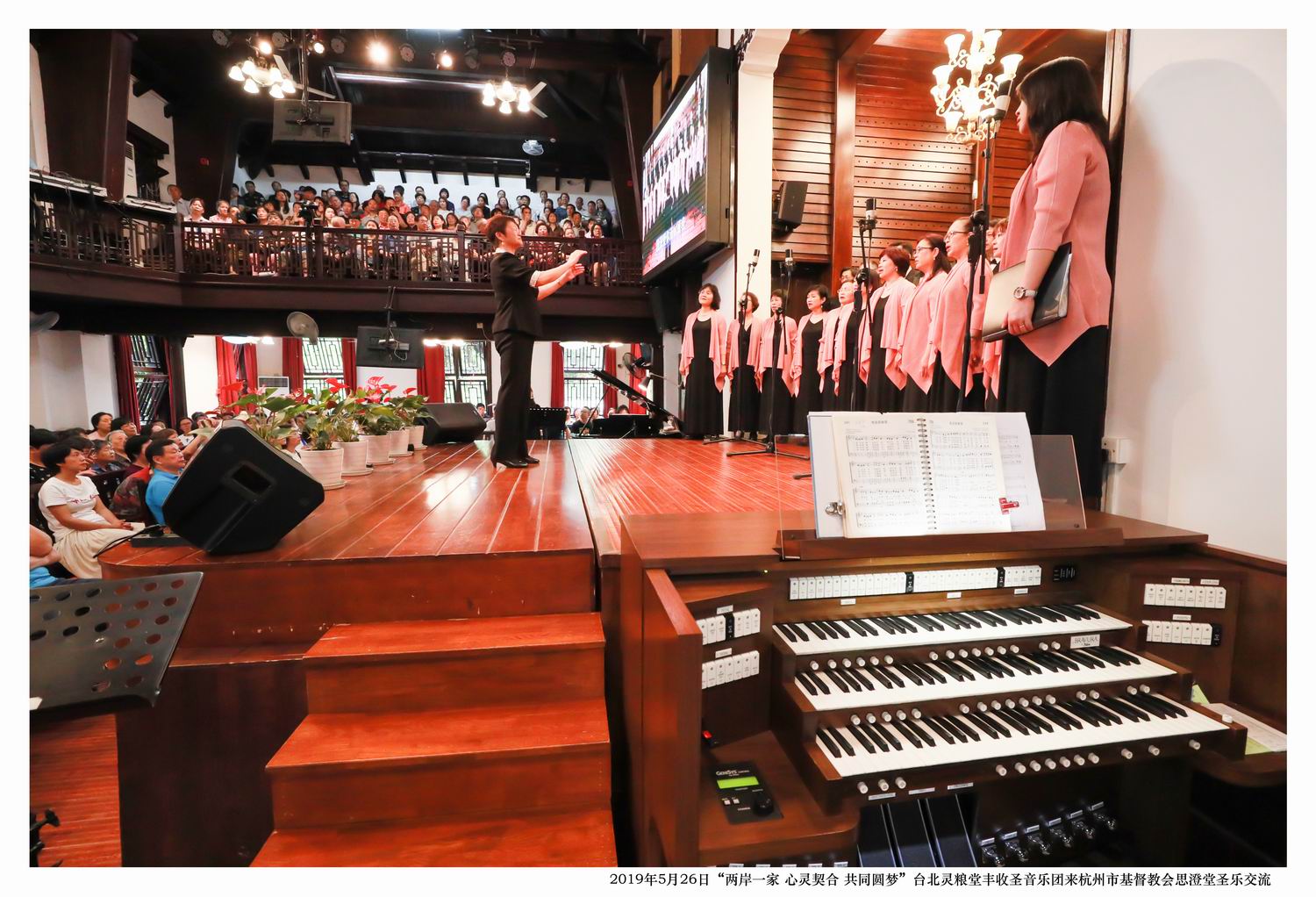 2019年5月26日上午,来自中国台北的基督教灵粮堂丰收圣乐团在音乐牧师汪美的带领下来思澄堂进行献唱与交流。上午第二堂主日崇拜由杭州市基督教协会副会长、思澄堂主任牧师黄明科主领,黄牧师在主里对中国台湾同胞的到来表示隆重欢迎。