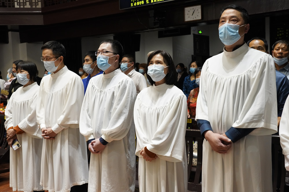 证道结束后,由浙江省基督教两会副会长张耀法牧师介绍十四位同工的资料。之后,台上四位牧师奉圣父、圣子、圣灵的名为这十四位同工举行按立仪式,愿他们在以后的牧养工作中,神加添给他们够用的力量,赐他们智慧,行在神的公义中。