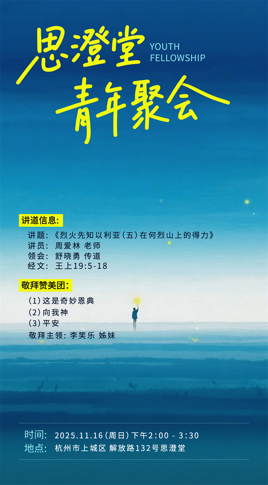 报名方式:大门口招待组处登记报名 或找思澄堂第一办公室詹静波牧师报名 或联系杨红梅姊妹 13336048147