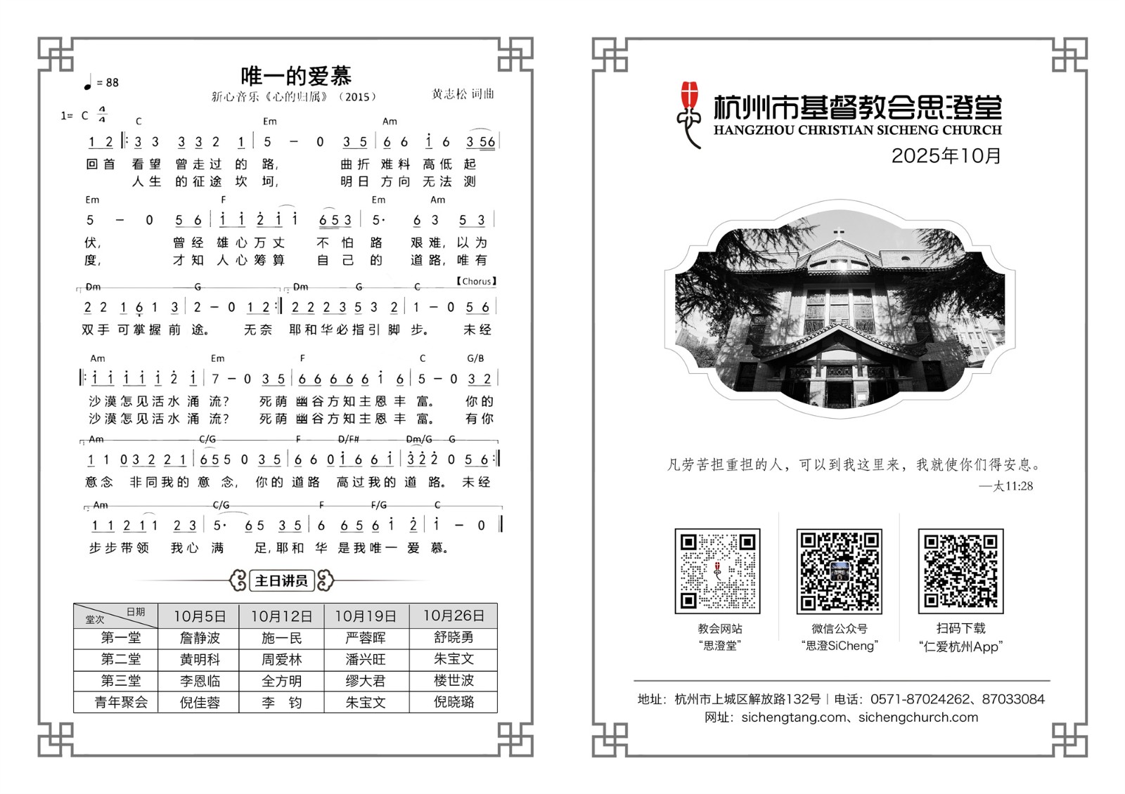2025年10月份主日单